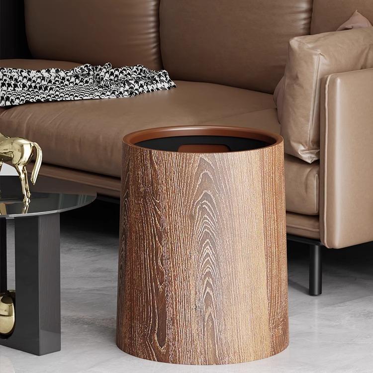 Wood Grain Trash Can for Kitchen, Bedroom, Living Room, and Bathroom - Stylish and Spacious Waste Basket for Home or Hotel.