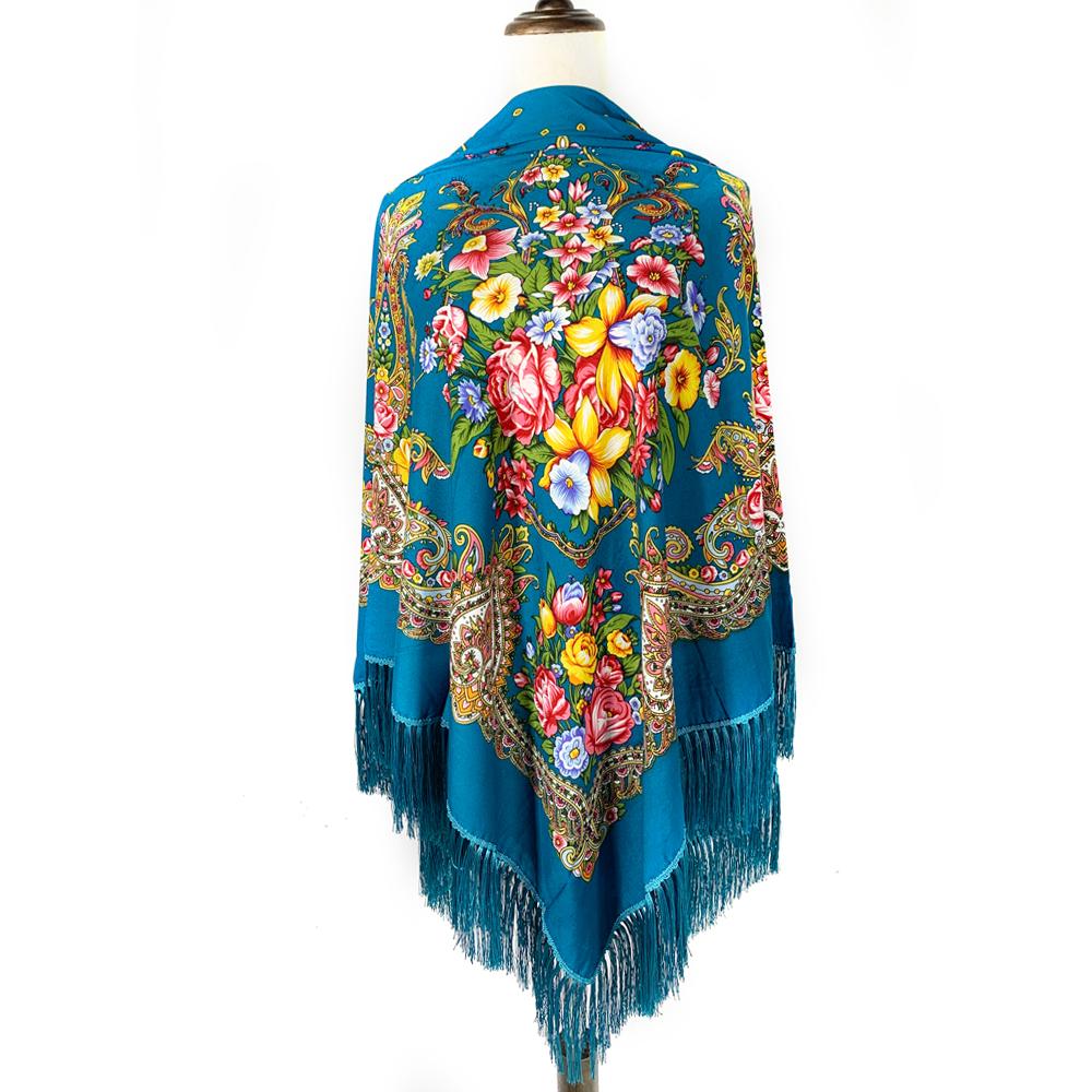 160*160Cm Russian Square Scarf Women Retro Floral Print Fringed Bandana Blanket Shawl Babushka Handkerchief Hijab Head Wraps