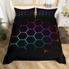 Boys Cartoon Honeycomb Duvet Cover Geometry Hexagon Bedding Set Twin King Polyester Colorful Grid Art Neon Decor Comforter Cover