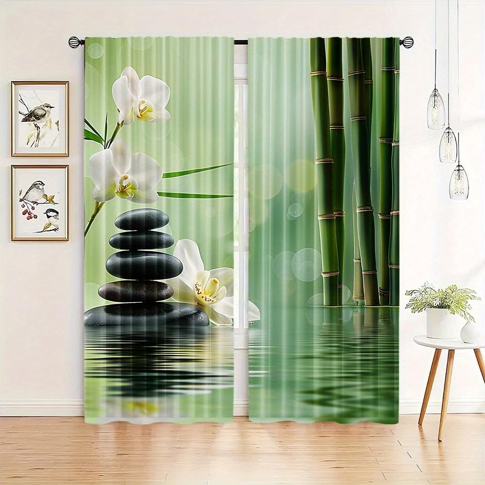 2PCS Bamboo Zen Sheer Curtains Semi-Transparent Polyester Rod Pocket for Living Room Bedroom Kitchen Dining Room