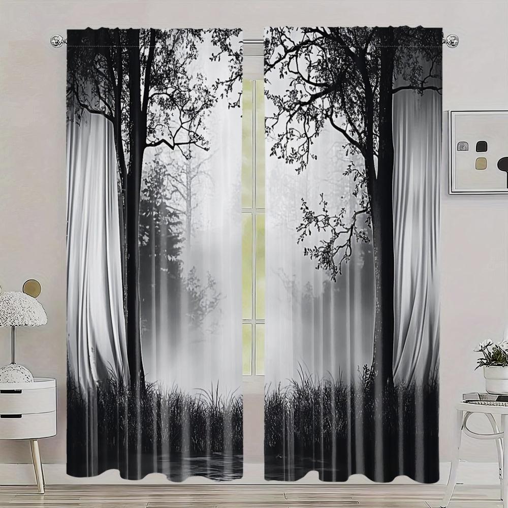 2PCS Blackout Curtains Misty Forest Gothic Print Polyester Rod Pocket Top for Bedroom Living Room Home Decor