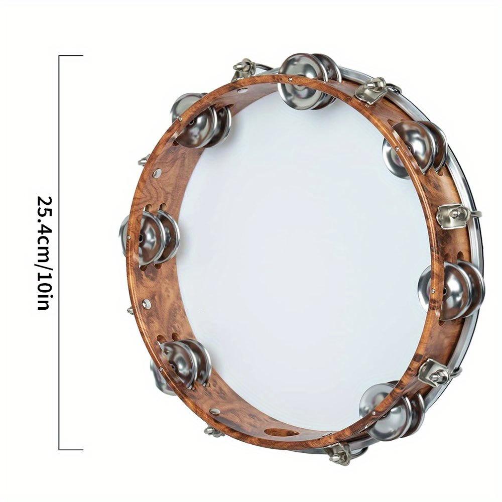 10-inch Tambourine Double Row Stainless Steel Bells with Adjustment Tuning Tool Hand Clapper Drum Performing