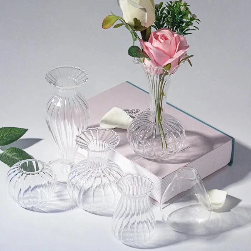 Transparent Vintage Relief Vase INS Mini Glass Vase Hydroponic Plant Vase Desktop Ornaments Wedding Party Supplies Home Decor