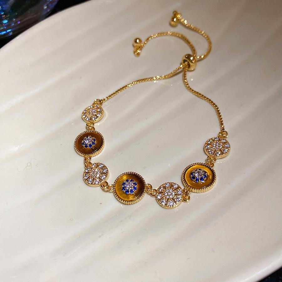 18K Gold Plated Geometric Tiger's Eye Bracelet with Zircon, Vintage Autumn Winter Style, Light Luxury Jewelry.