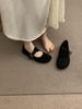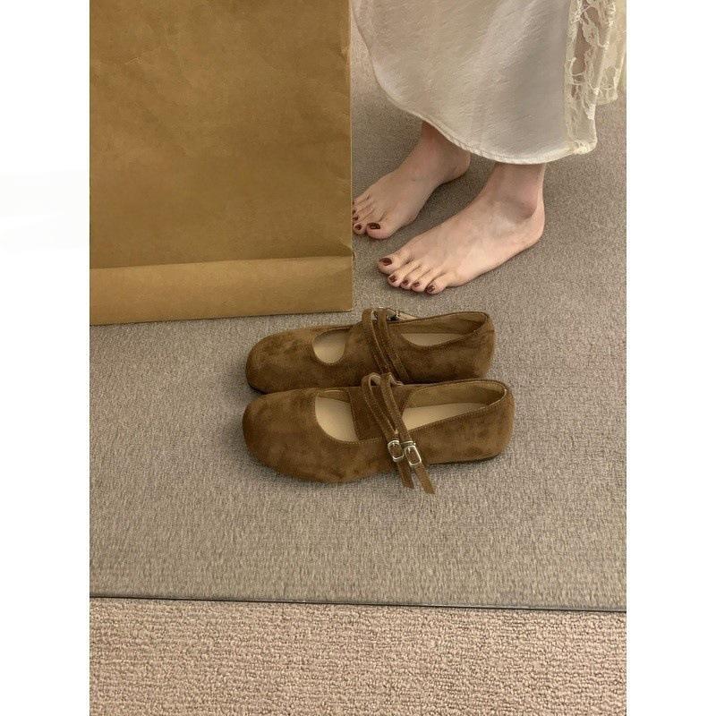 Literary style frosted leather Mary Jane shoes one-word buckle with shallow mouth round head flat-bottomed ballet shoes