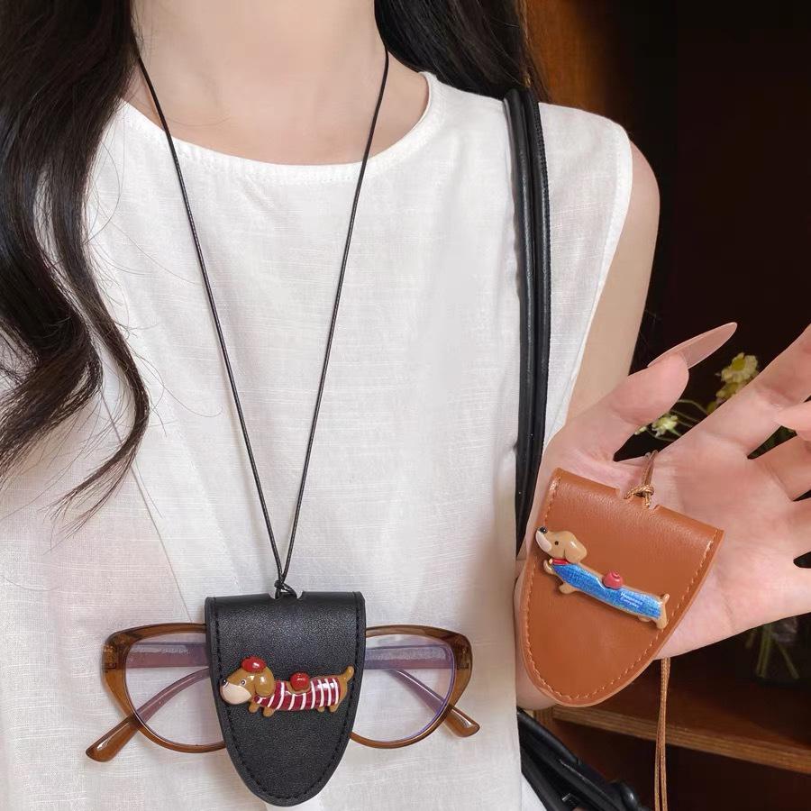 Cute Dog Hanging Neck Sunglasses Eyeglasses Storage Bag PU Leather Magnetic Glasses Clip Cover Travel Anti-lost Glasses Holder