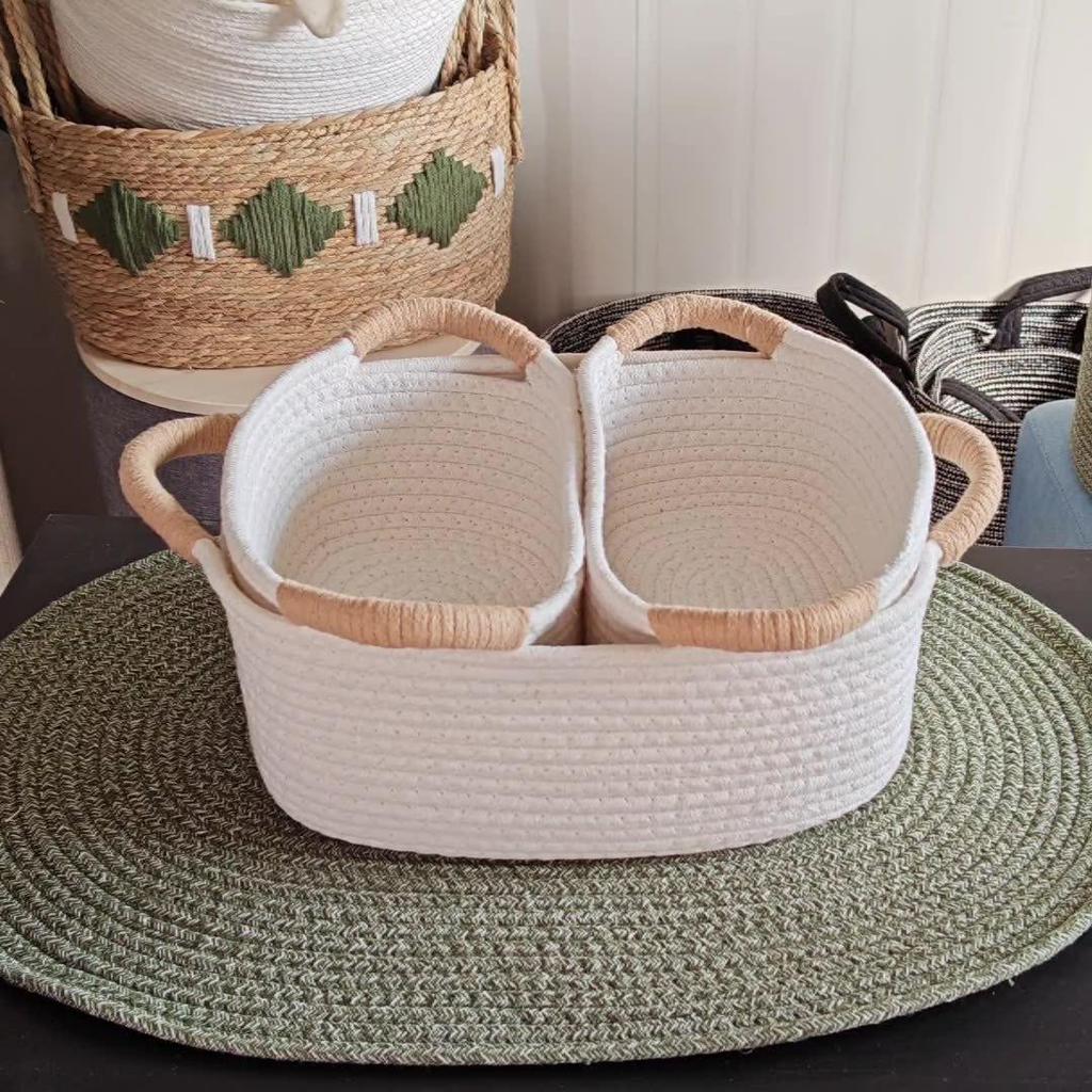 Cotton & Jute Woven Storage Basket - Cosmetics, Snacks, Sundries Organizer