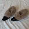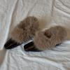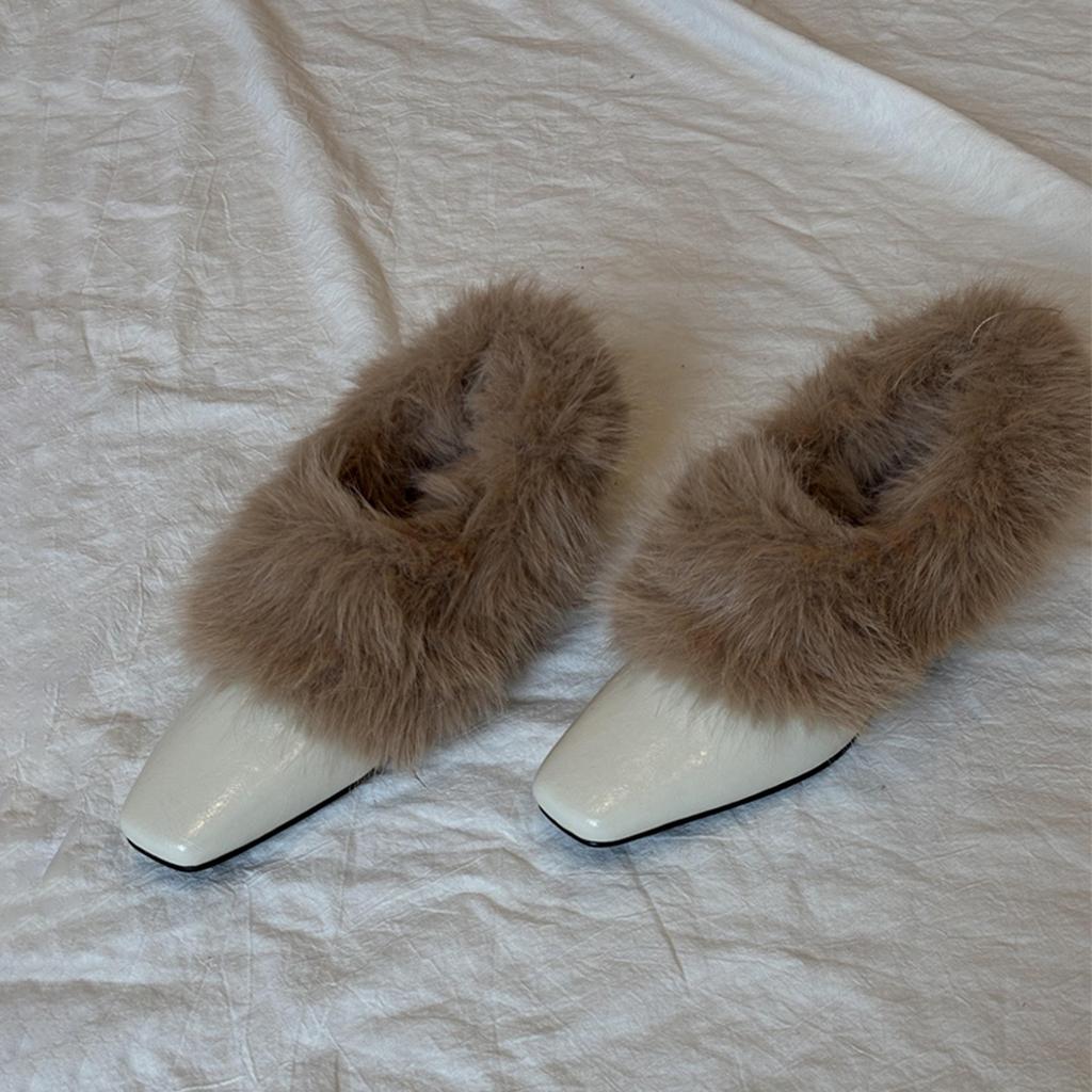 Square head thick heel fluffy shoes one pedal retro plush Mary Jane single shoes commuting warm small leather shoes