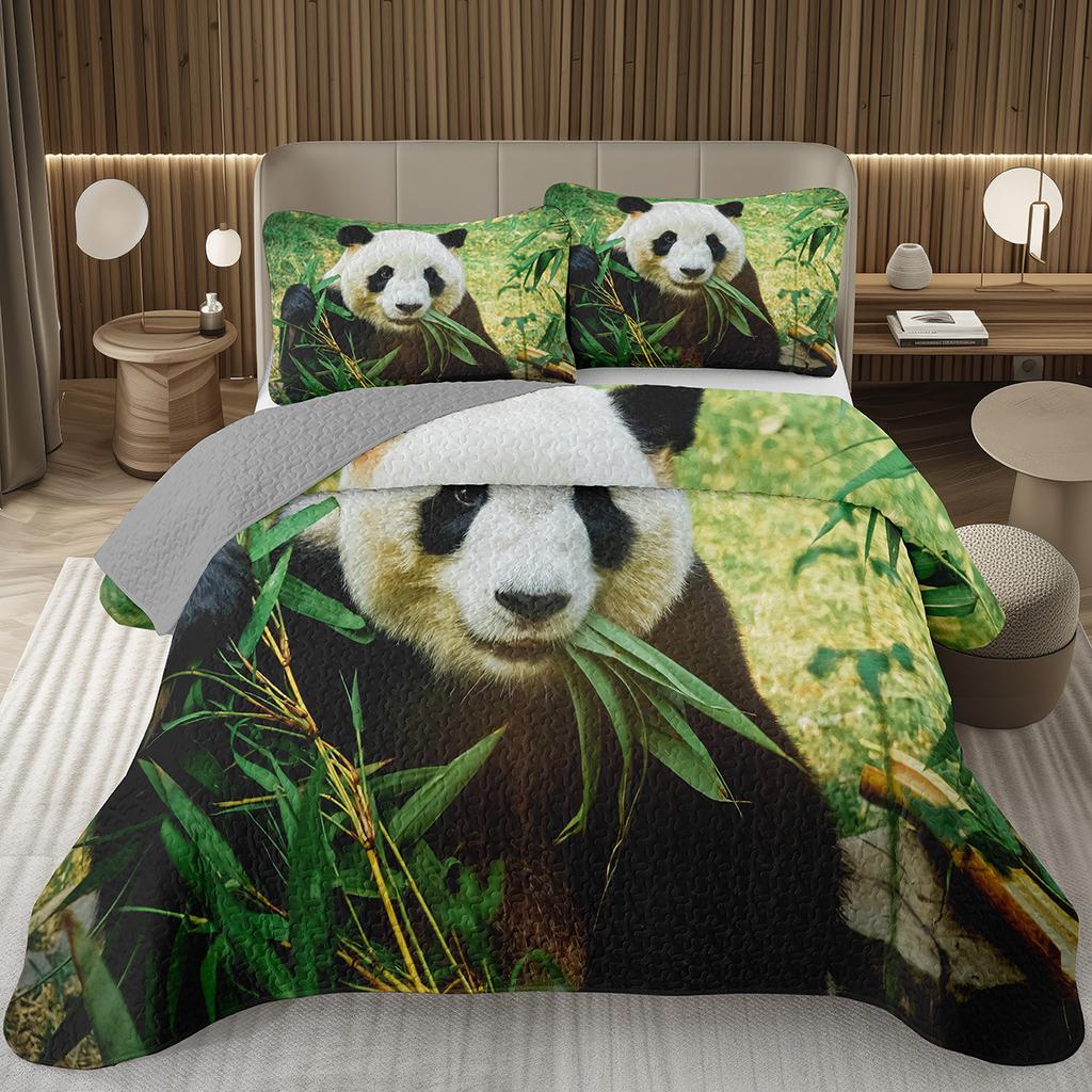 White And Black Panda Bedspread Set Kawaii Bamboo Botanical Twin Quilt Set Cute Panda Themed Coverlet Wild Animal Bedding Set