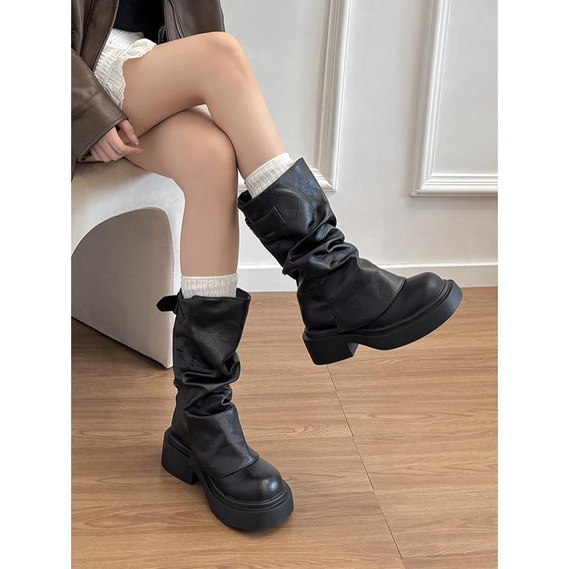Vintage Pleated Maillard Pants Boots Women's Medium Boots Martin Boots Short Boots