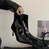 Black high-heeled short boots 2025 autumn and winter pointed head lacquered thin boots thin-heeled short boots autumn and winter single boots