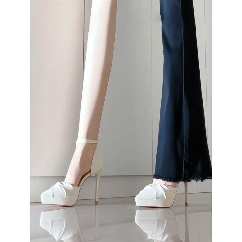 2025 meters white French premium waterproof table high heels with pleated design stiletto etiquette sandals