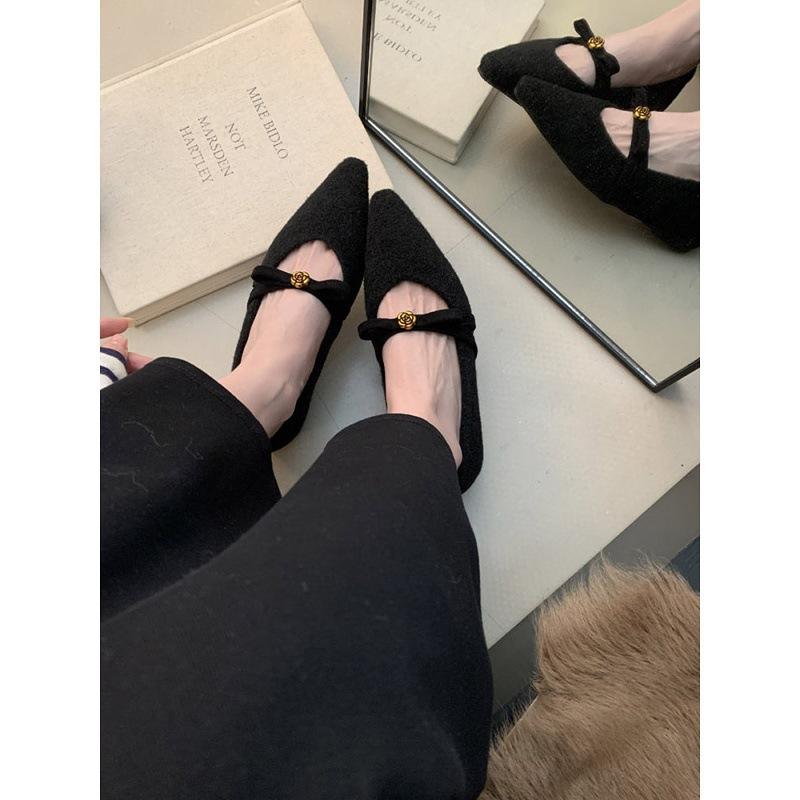 French inner height increase Mary Jane shoes 2025 word with pointed small fragrant wind shallow mouth single shoes