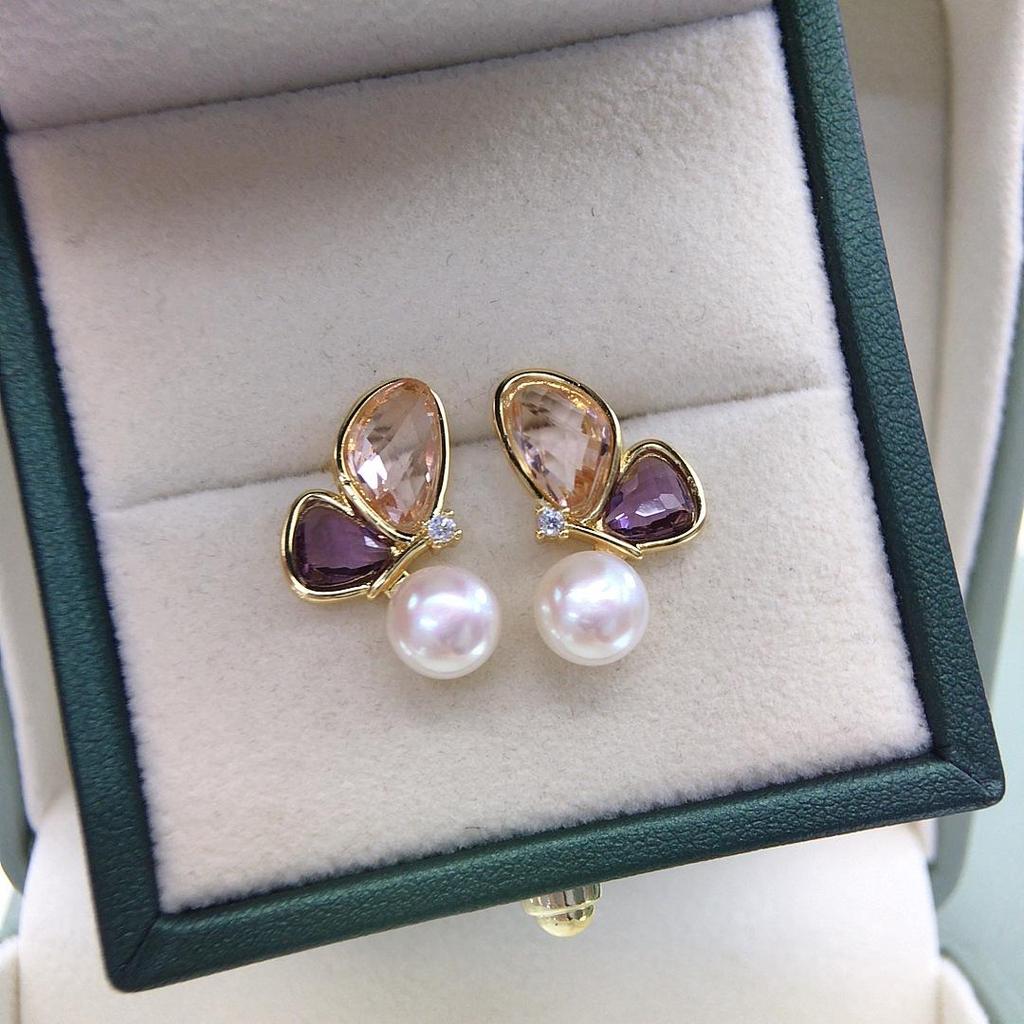 Zhuji Freshwater Pearl Studs with Zircon Butterfly Design