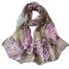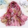 Four Seasons Thin Soft Chiffon Women Peony Flower Printing Beach Silky Georgette Scarf Shawls Long Wraps Beach Sunscreen Hijab