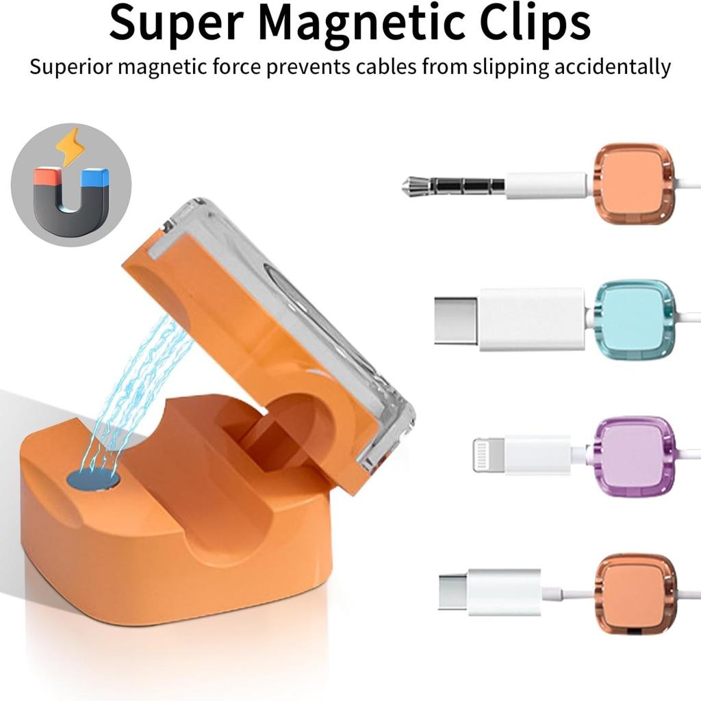 6-piece set of color magnetic charger office desk cable clip, sunlight colored USB charging cable organizer, magnetic plug hook