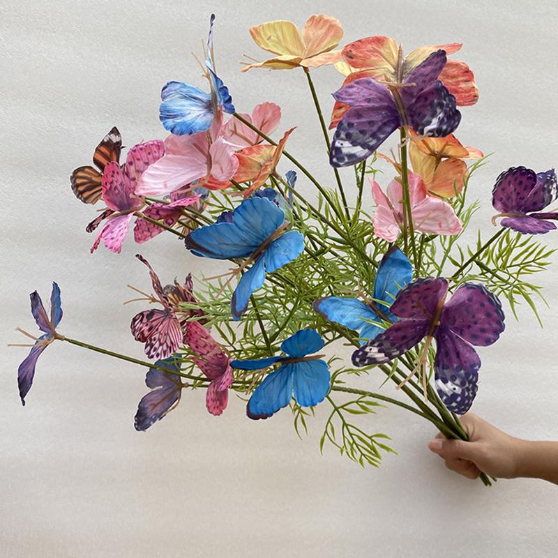 Three-Head Butterfly Artificial Flowers for Wedding Decorations and DIY Floral Arrangements