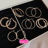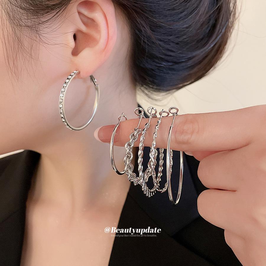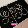 Twelve-Piece Silver Needle Diamond-Set Geometric Circular Hoop Earrings - Cool, Individual, Minimalist, High-End Niche Style