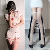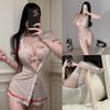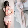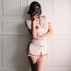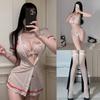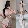 Manbaisha Sexy Sheer Deep V Lace Cosplay Nurse Uniform Set