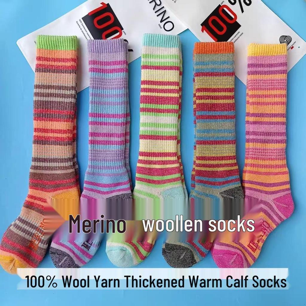 Colorful Striped 100% Merino Wool Knee-High Socks for Men & Women - Warm Autumn/Winter Wear