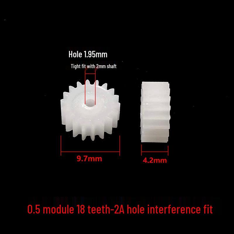0.5 Module 18-Tooth Plastic Spur Gear with 2mm Interference Fit Hole for Toy Gearbox Transmission