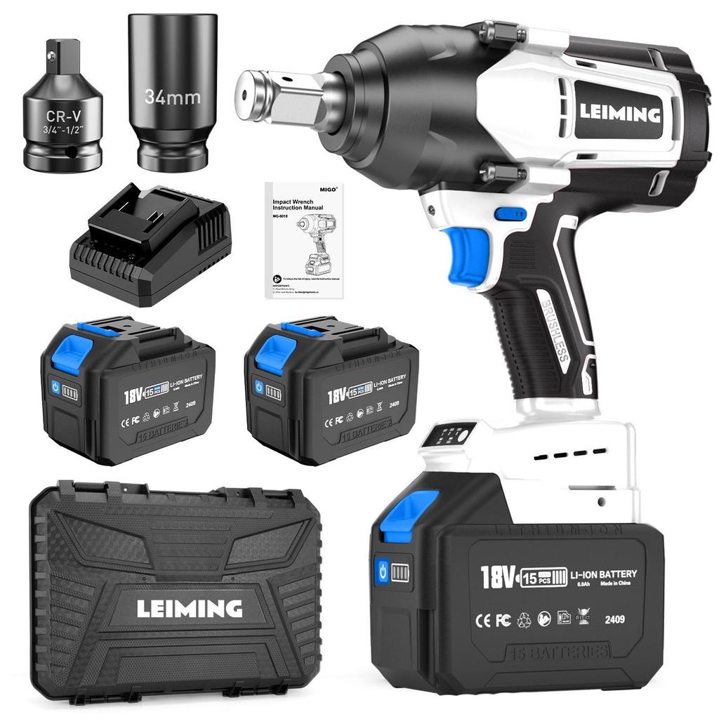 Leiming MG-8015 Brushless Cordless Electric Impact Wrench, 1800Nm, Powerful Lithium Battery Air Gun for Auto Repair & Scaffolding.
