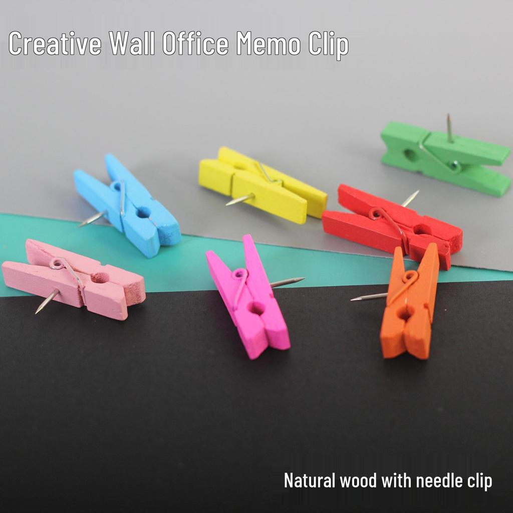 Colored Wooden Push Pins & Clothespins for Corkboards - Creative Office Stationery
