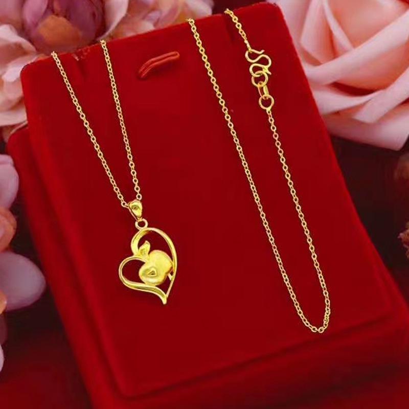 Japanese & Korean Style Heart Necklace: Sand Gold-Plated Copper with Apple Design for Women