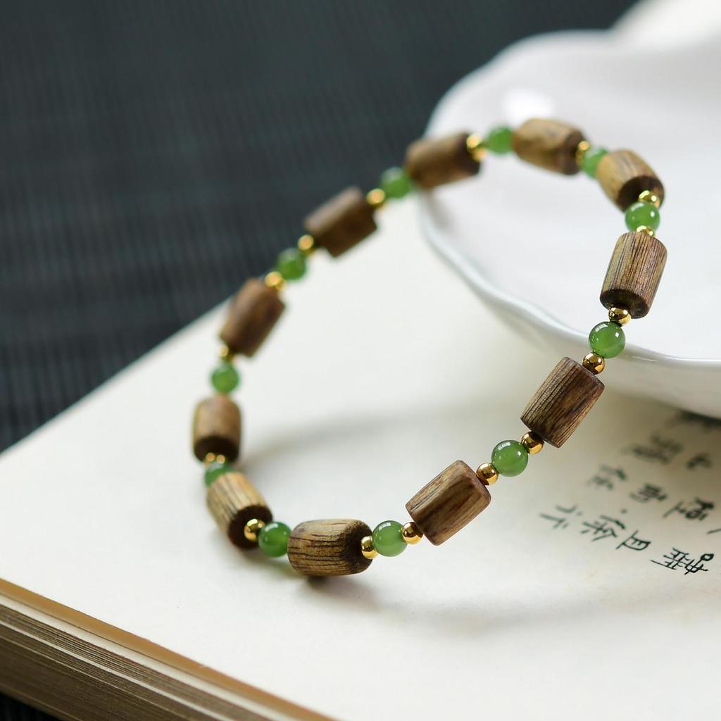 Natural Agarwood & Hetian Jade Bracelet with 925 Silver Beads (No Oiling)