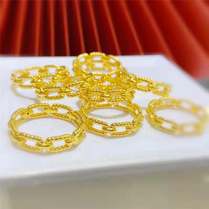 Gold Plated Interlocking Couple Finger Rings - Copper Open Hollow Design for Women's Fashion.
