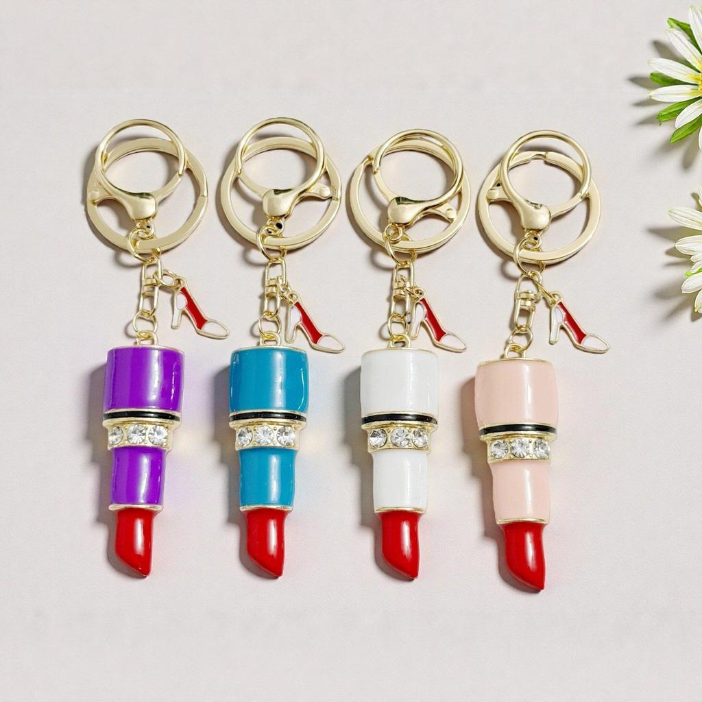 Elevate your accessory game with this eye-catching keychain designed for women who love to make a statement. This creative metal pendant features a dazzling rhinestone-encrusted high heel and a charming lipstick motif, offering a playful nod to fashion and beauty enthusiasts. Perfectly sized to adorn your bag or keys, it serves as a chic and functional ornament that reflects your personal style. Whether you're looking for a unique gift or a stylish addition to your own collection, this keychain combines elegance and charm in one standout piece.