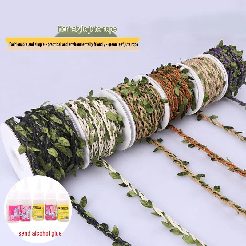 DIY Colorful Forest Style Green Rattan Leaves Hand-Woven Jute Rope for Decoration and Jewelry