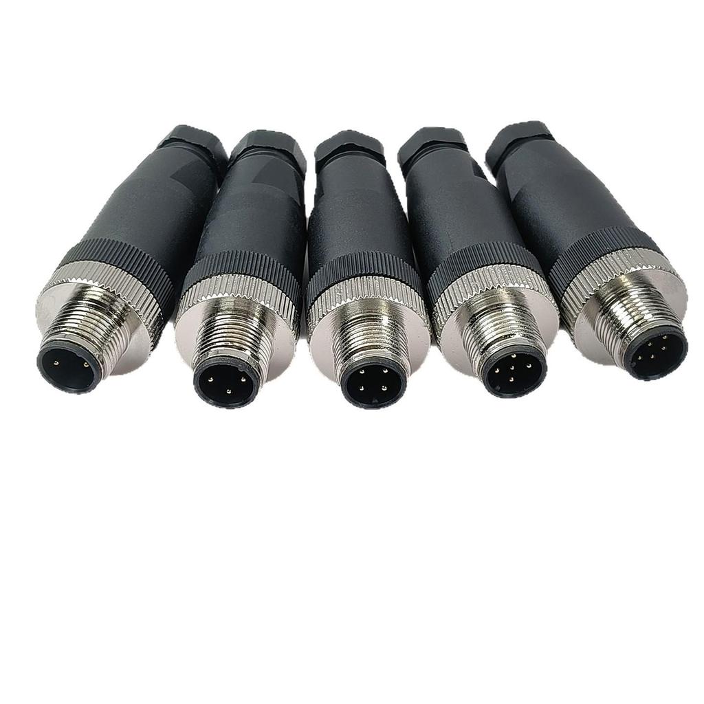 M12 Aviation Plug Crimp Type Male/Female Waterproof Connector: 2, 3, 4, 5, or 8 Pin, Straight/Right Angle.