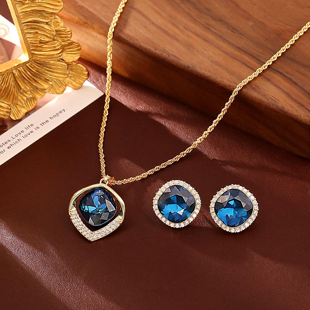 Ocean Love Deep Blue Crystal Pendant Necklace & Exquisite Goddess Stud Earrings Set