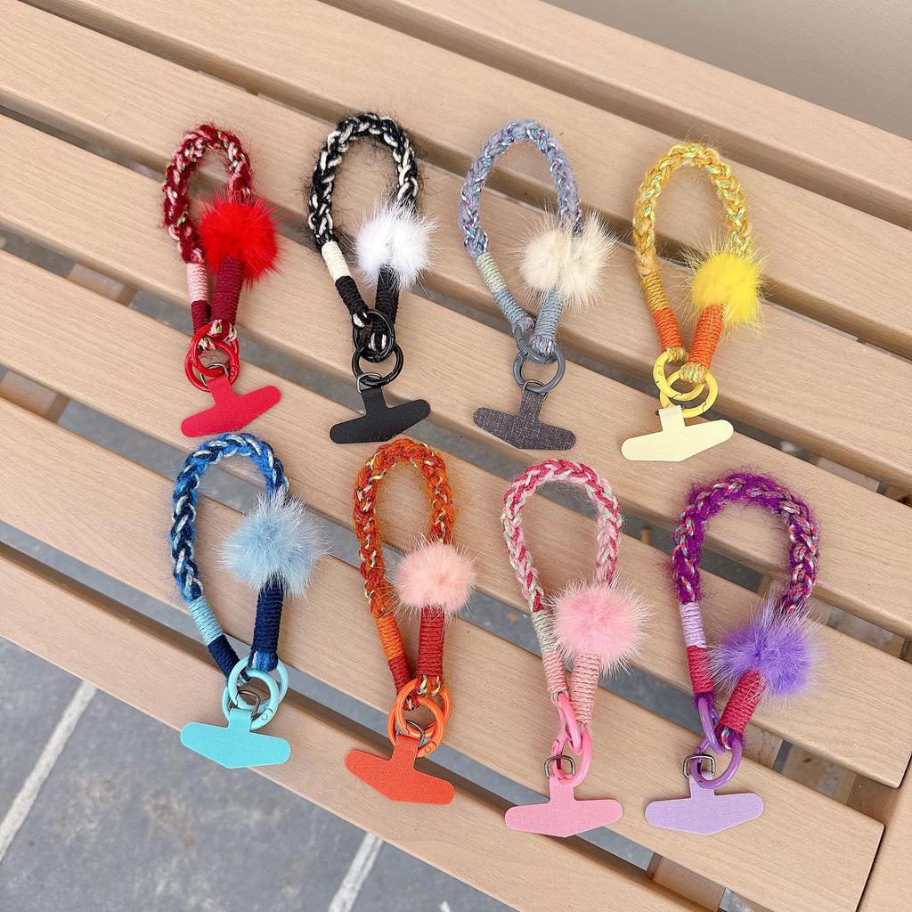 Knitted Pompom Plush Lanyard and Bracelet for Phone or Handbag