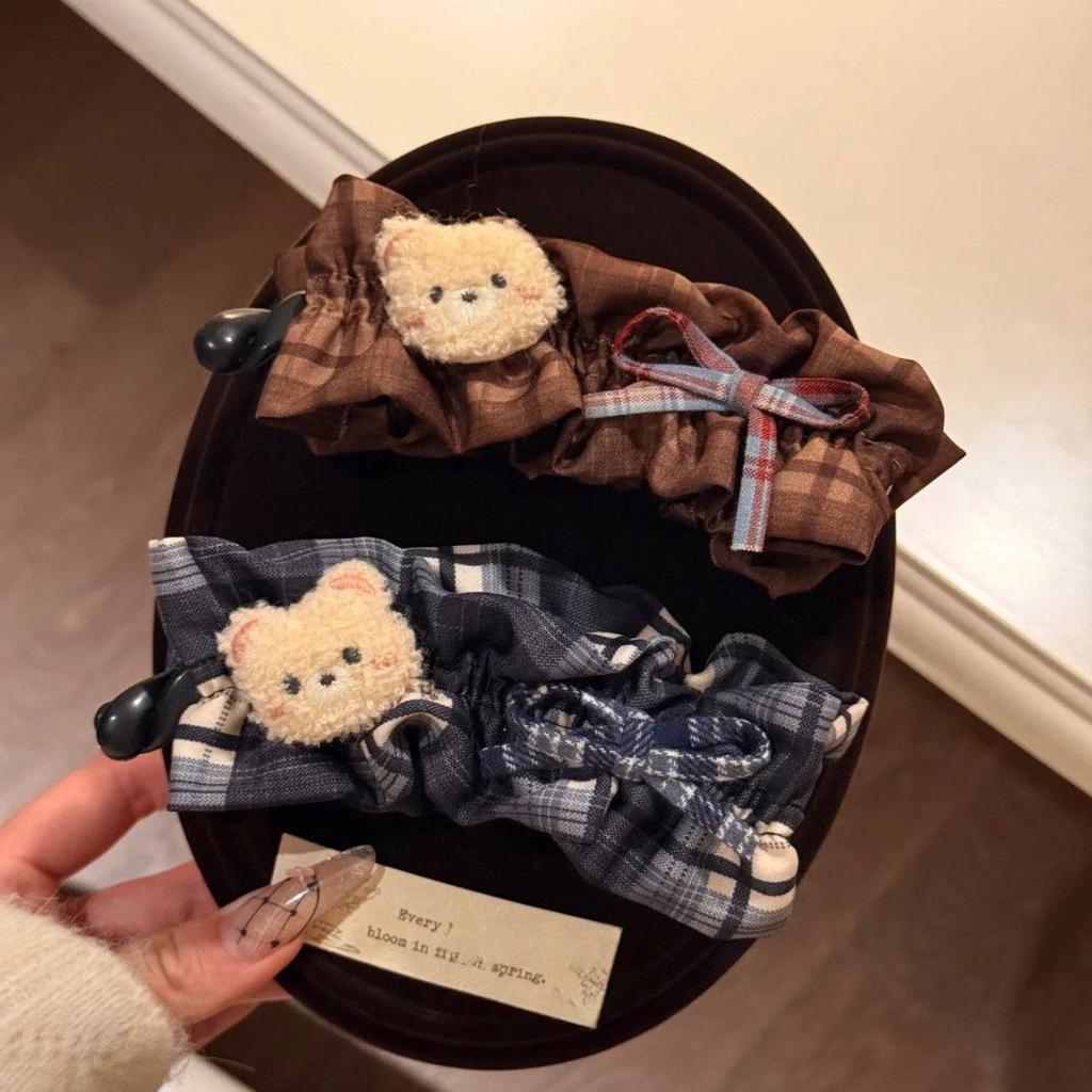 Teddy Bear Bow Hair Clip: Cute, High-End Pleated Design
