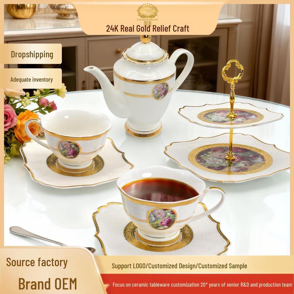 Karosa European Exquisite Ceramic Coffee Set with Gold Rim Bone China Cups and Saucers