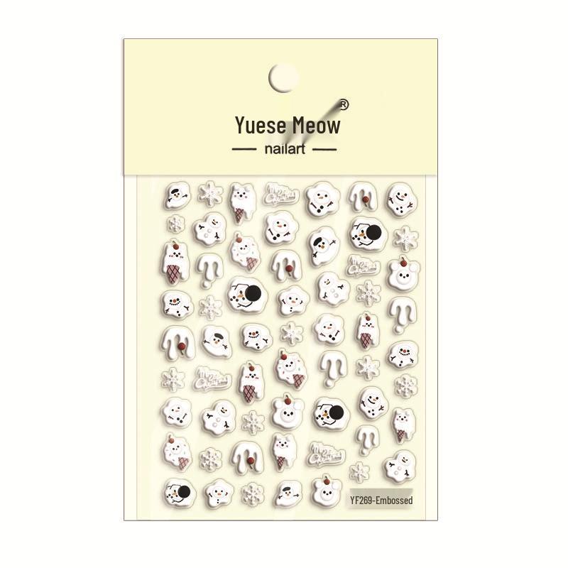 Winter Cartoon Christmas Nail Art Stickers: Embossed Snowman, Tree, and Santa 3D Decorations.