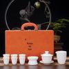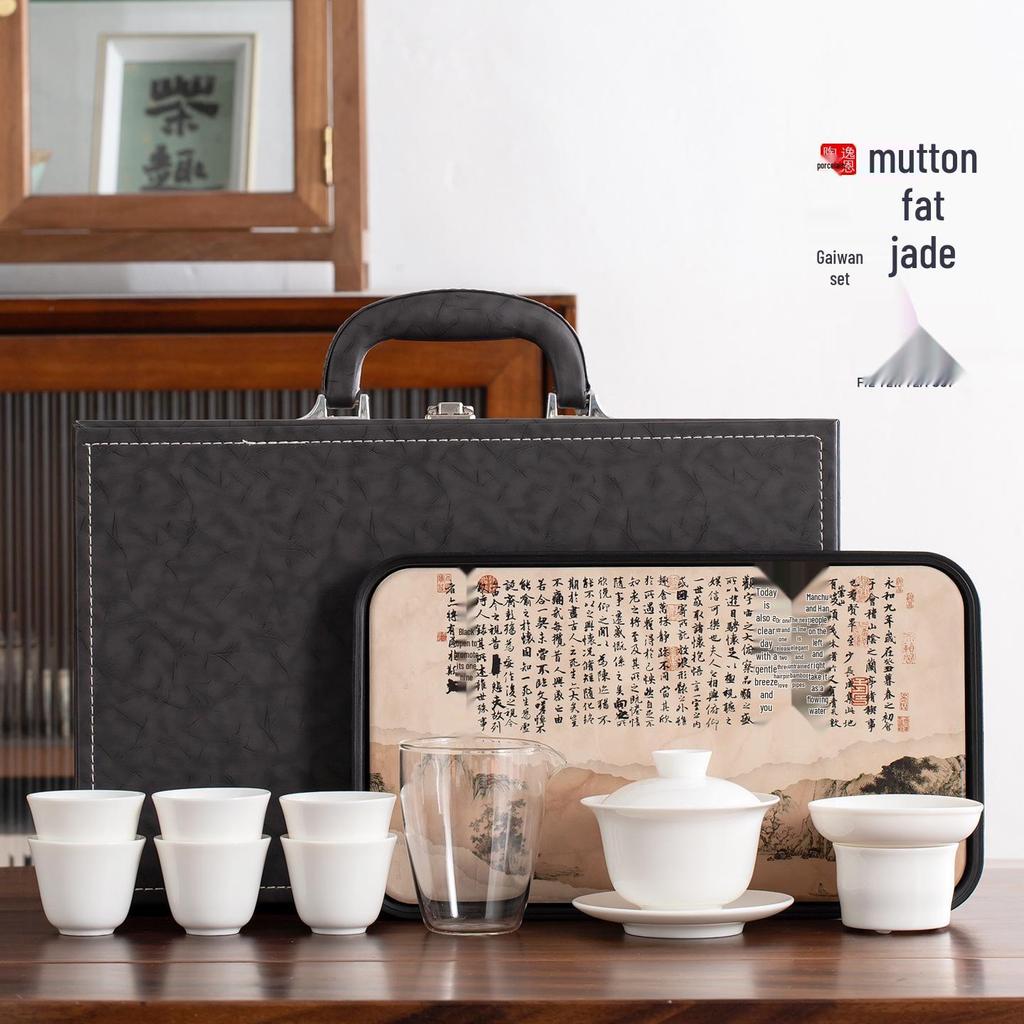 Lux Mutton Fat White Porcelain Kung Fu Tea Set: Gaiwan & Teacup with Portable Gift Box