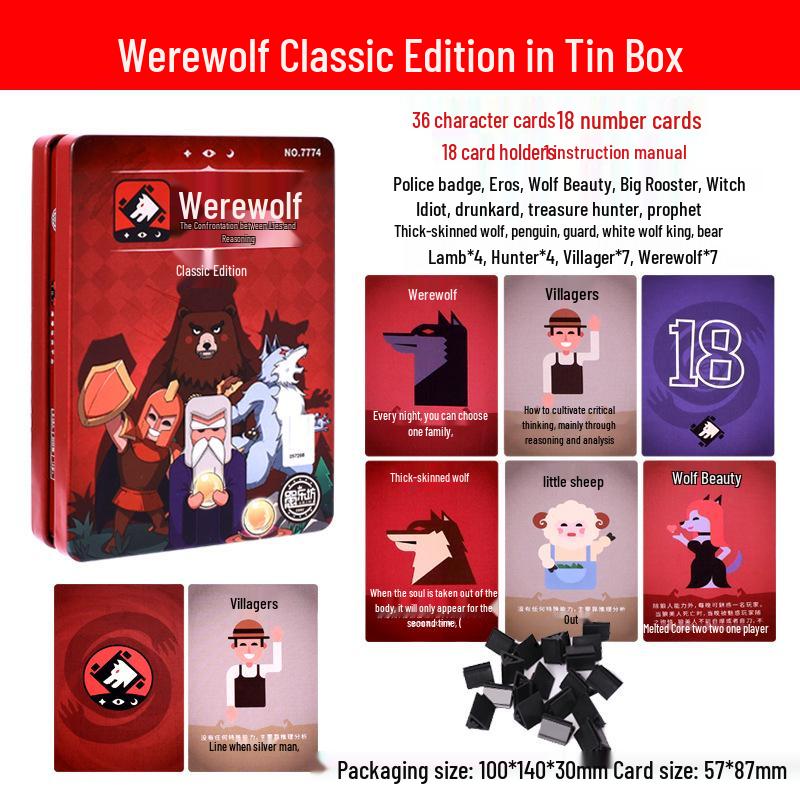 Genuine Werewolf Table Game Classic Edition: Iron Box with Numbered Tokens & New Character Cards