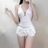New Women's Colorblock Polka Dot Two-Piece Swimsuit - Sexy Short Sleeve Top & Low Waist Boyleg Bottoms