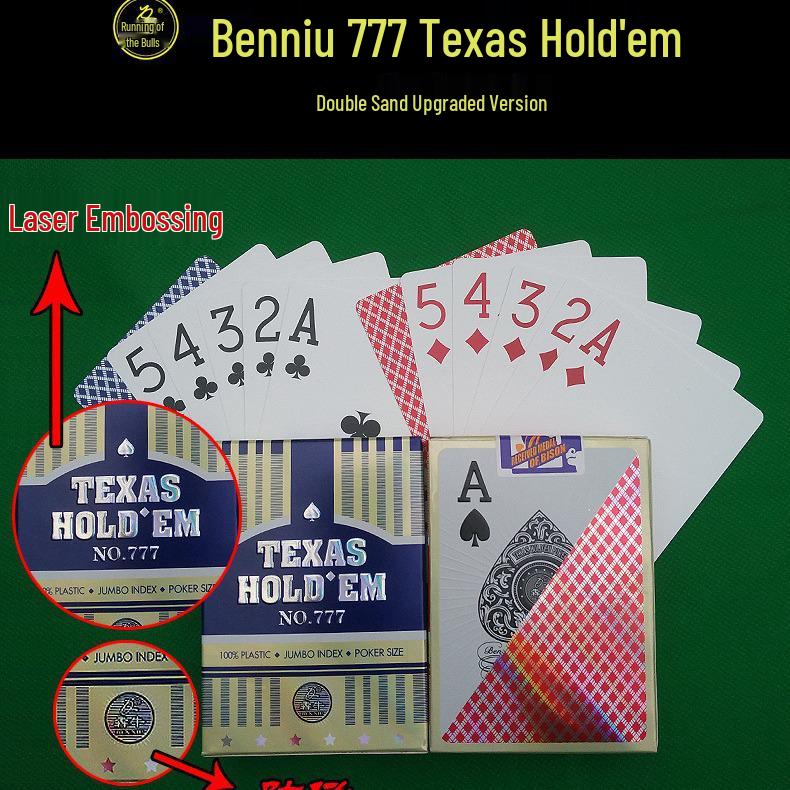New Ben Niu 777 Texas Hold'em Large Print Frosted Plastic Poker Cards - Waterproof & Durable
