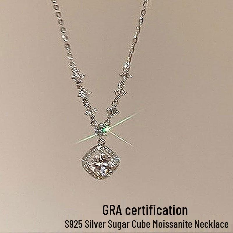 S925 Sterling Silver Moissanite Zirconia Sugar Cube Necklace: Elegant High-End Sweater Chain Gift for Women