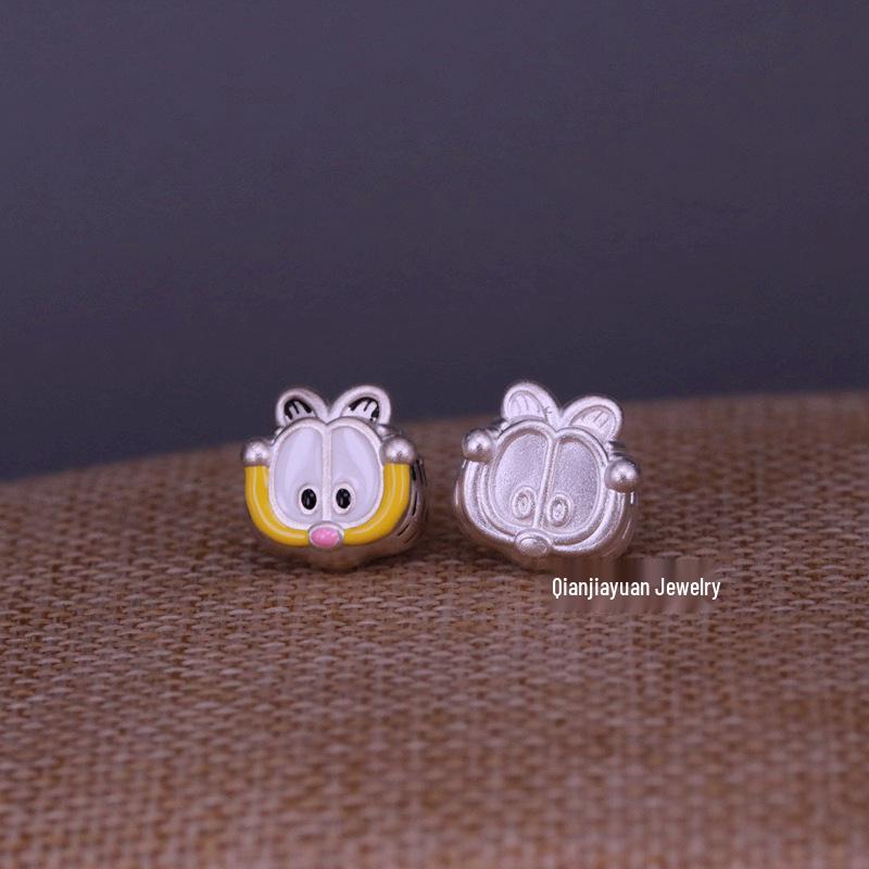 Garfield Cartoon Beaded Bracelet Kit, 999 Sterling Silver, Braided Rope DIY Jewelry