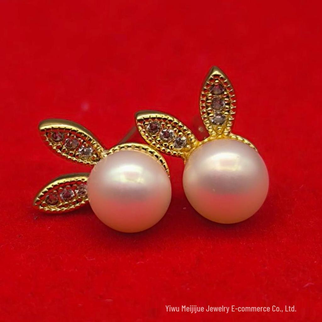 Korean-Style Pearl Rabbit Ear Stud Earrings - Trendy, Versatile Fashion Accessories