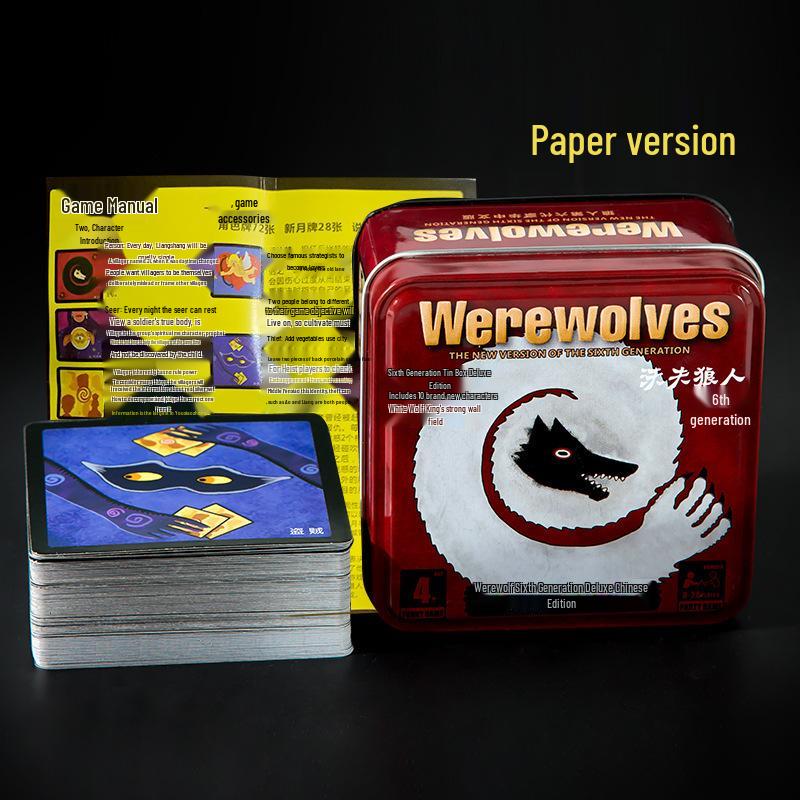 Werewolf 6th Edition Table Game Tin Box with Crescent and Killer Game Cards: It's Dark, Please Close Your Eyes