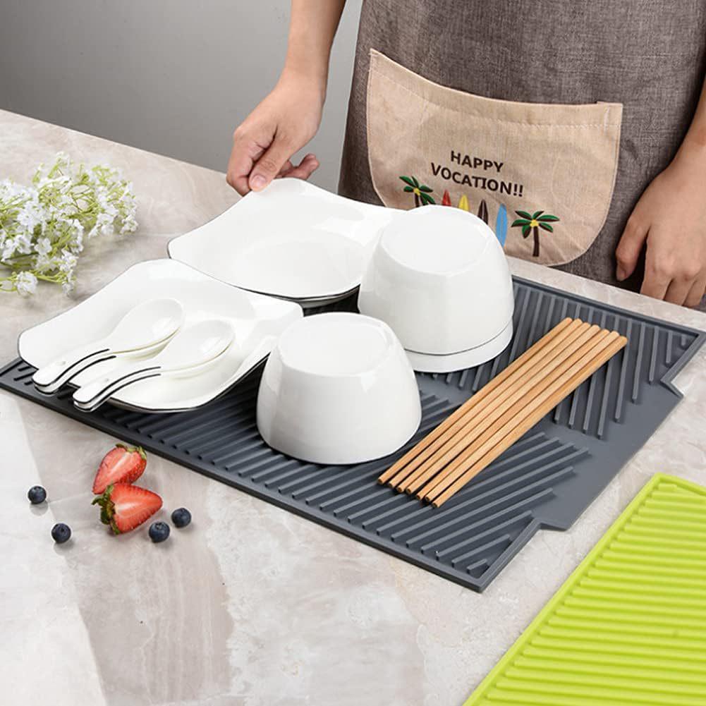 Large Silicone Striped Draining Mat - Minimalist Square Picnic Bar Pad