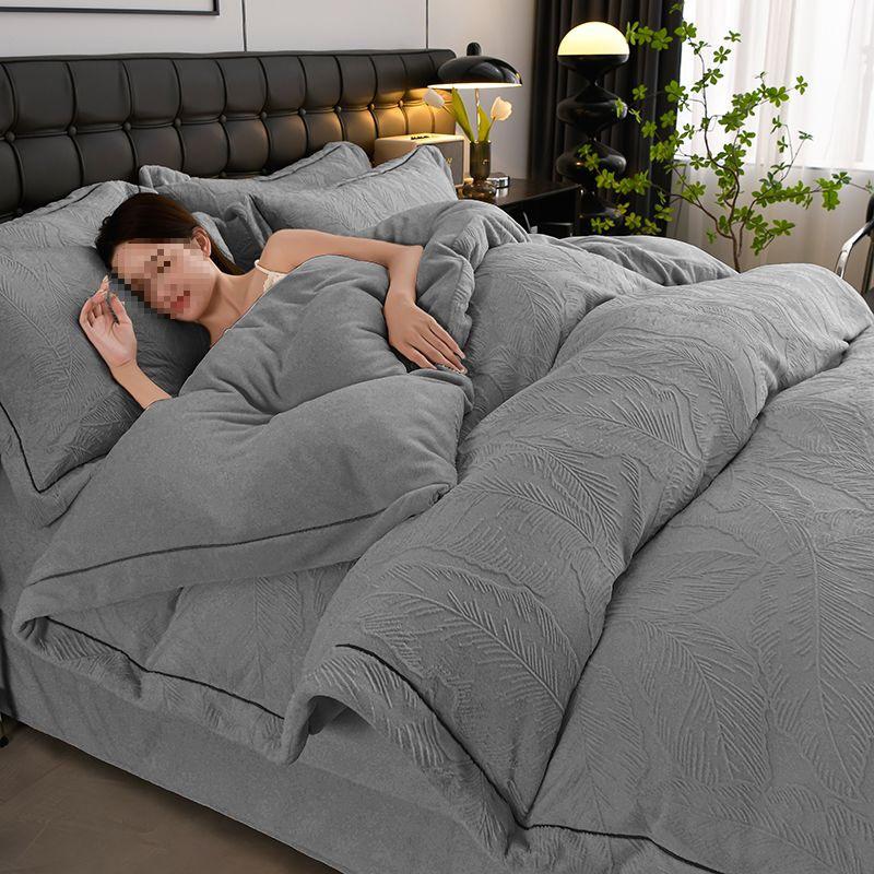 G5Z2025 Autumn/Winter Milk Velvet 4-Piece Solid Color Luxury Carved Bedding Set with Fitted Sheet.
