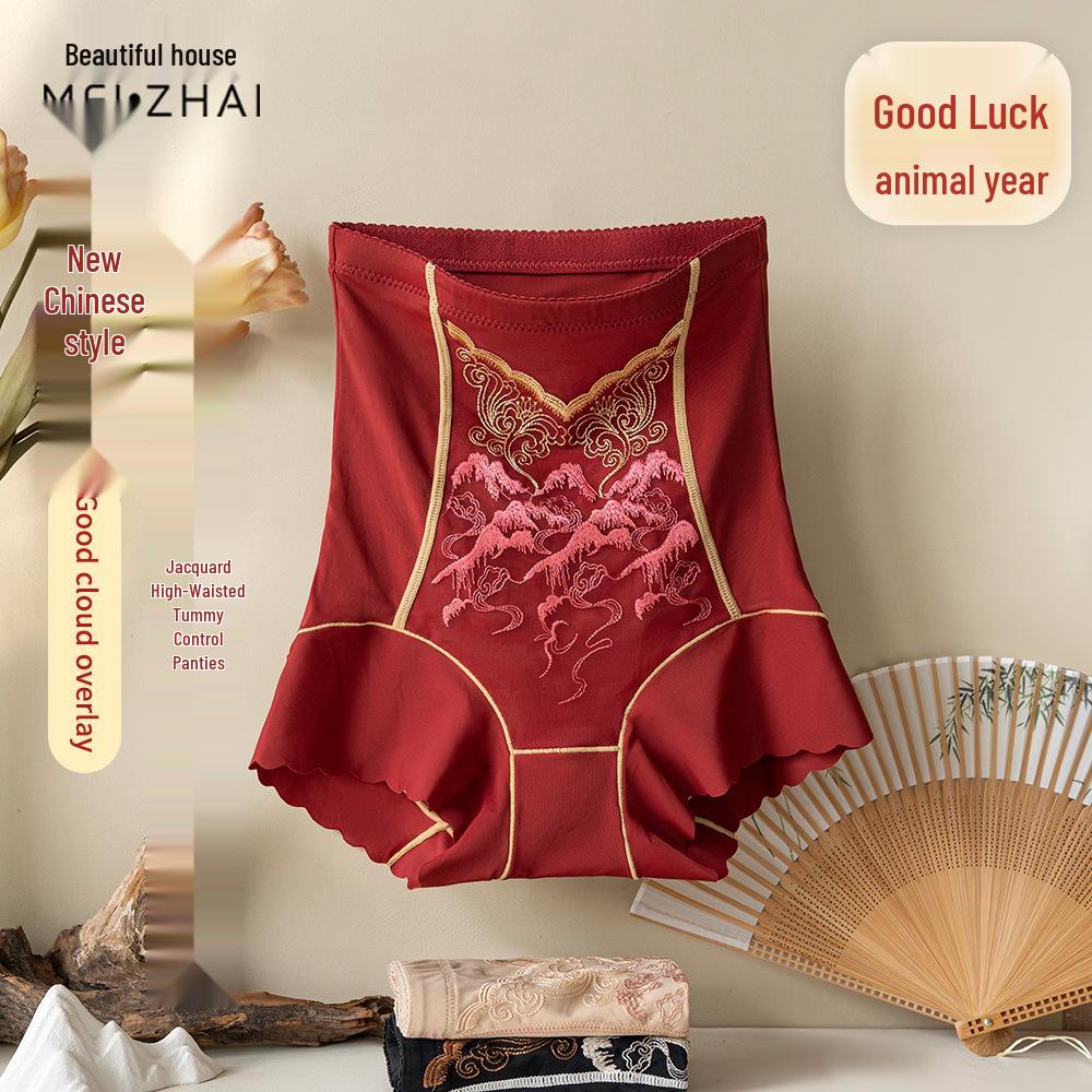 Benmingnian Chinese Embroidery High Waist Body Shaping Pants - Mulberry Silk Tummy Control and Hip Lifting Panties for Women.