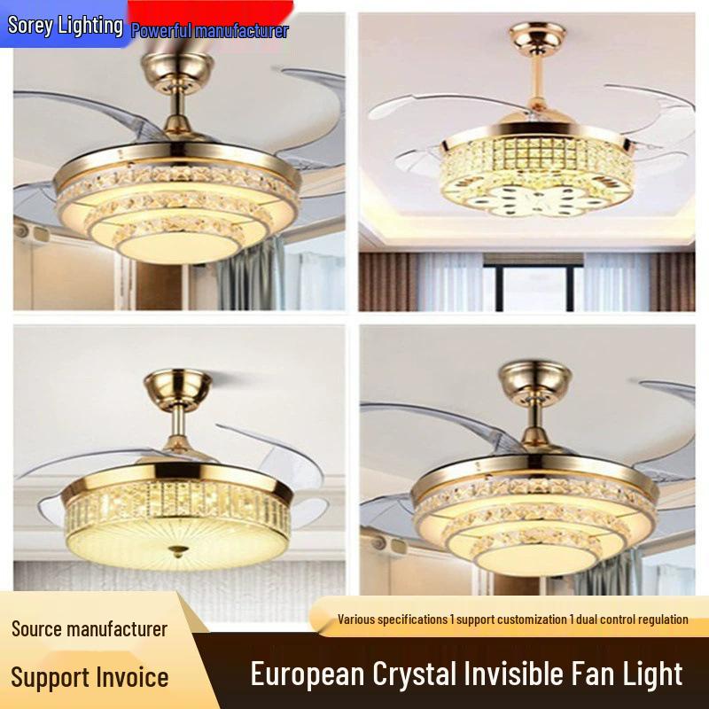 European-Inspired Crystal Chandelier Ceiling Fan with Smart Inverter and Invisible Design for Living, Dining, & Bedroom